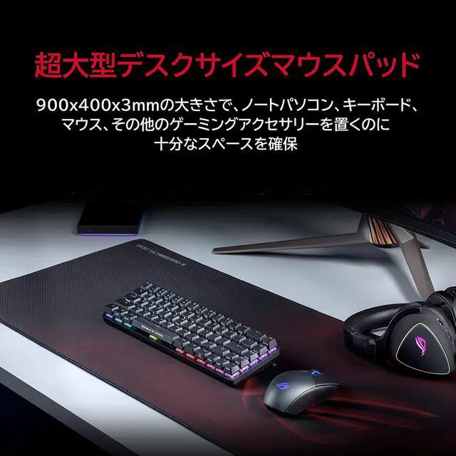 ROG Scabbard II extended gaming mouse pad with protective nano-coating for a water-, oil-and dust-repellant surface, with anti-fray, flat-stitched edges and a non-slip rubber base