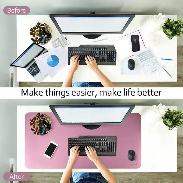 Double Side Usage: You can use either side you like. 2 in 1 desk pad, just turn it over and use it.