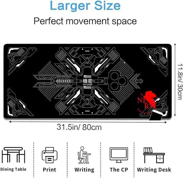 31.5" X 11.8" Extended Size:This Gaming Mouse Pad Is Large Enough For Better Ergonomics And Sensitivity. Perfect For Your Gaming Mouse, Full-Size Mechanical Keyboard And Other Desktop Items. Maintain A Clean And Tidy Desk. Feel Free To Configure Your Settings. Protect Your Desk From Scratches, Stains, Spills, Heat And Abrasion.
