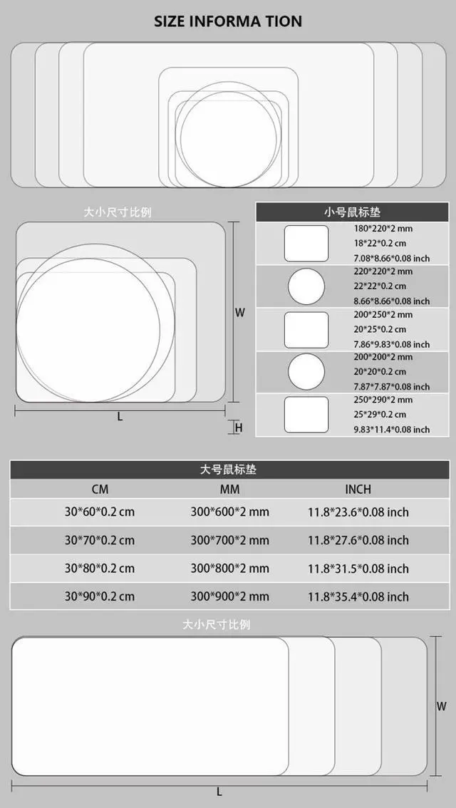 Size: 300*600mm, 300*700mm, 300*800mm, 300*900mm 2) Brand New Fashion Mouse Pad Design 3) Non-slip Black Rubber Backing. 4) It's perfect for Optical and Trackball Mouse. 5) Printed Pictures are High Definition and Fidelity