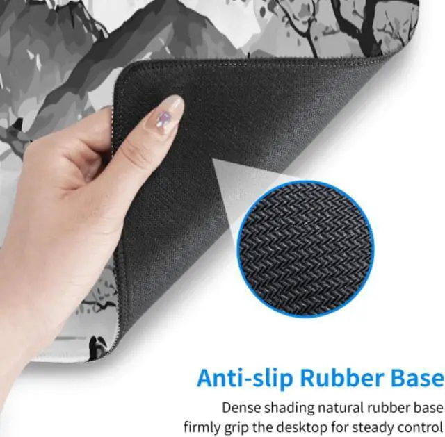 The latest stitching technology ensures that the mouse pad will not wear or deform during use and also enhances the aesthetics and service life of the mouse pad. Non-Slip Rubber BaseOur mouse pad japanese features a non-slip rubber base that firmly grips your desk to avoid random movement and provides stable operation when moving your mouse quickly or typing. Easy To CleanThis cherry blossom mousepad is easy to clean and if you accidentally spill your coffee or drink you can wipe it with a damp cloth. Our black white japanese mouse pad is washable non-fading foldable leaving no creases easy to carry and won't delay your work or gaming.
