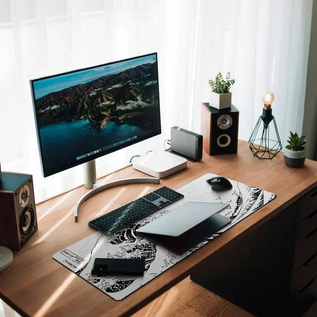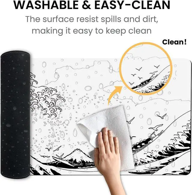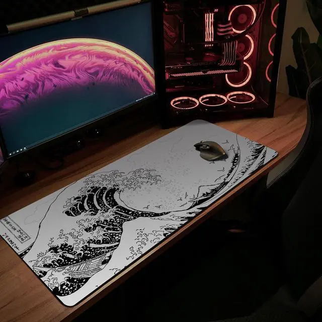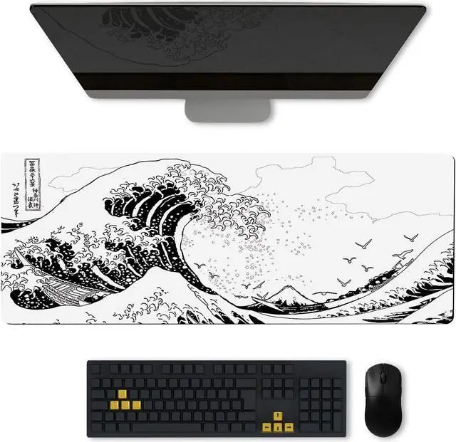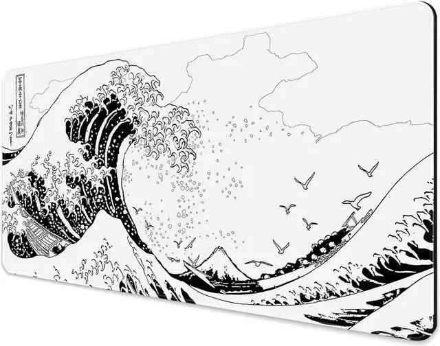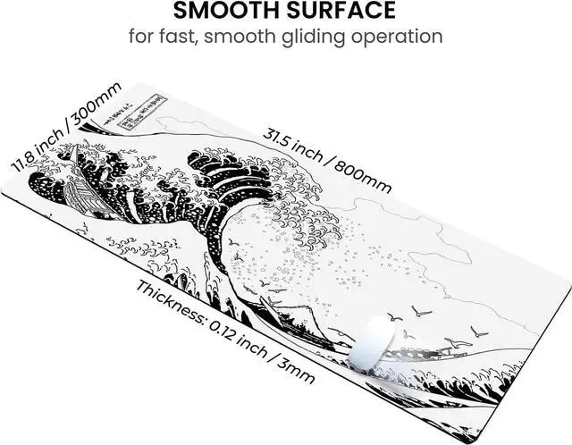• Gaming Mouse Pad with Japanese Sea Wave Extended Large Cool Anime Mousepad for Desk 31.5 x 11.8 in Non-Slip Base Stitched Edges for Gaming and Office Work (White)