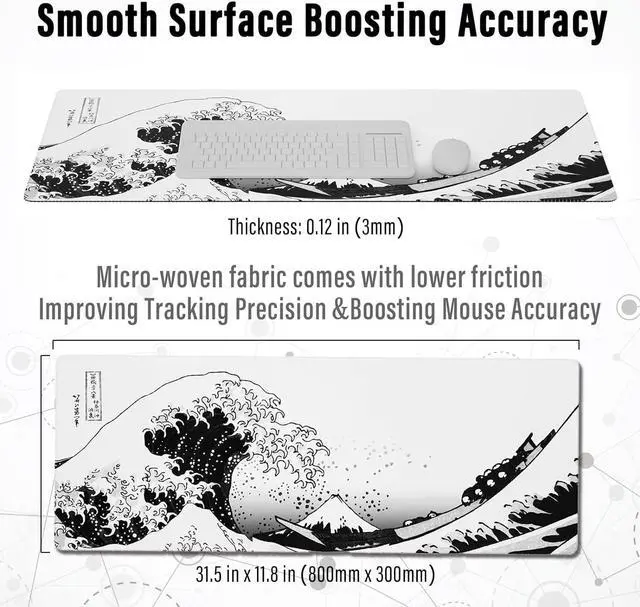 Large Size: Measures 31.5 x 11.8 x 0.12 inches (800 x 300 x 3 mm); this full desk mousepad accommodates a mouse a full-size mechanical keyboard and other desk itemsHighly