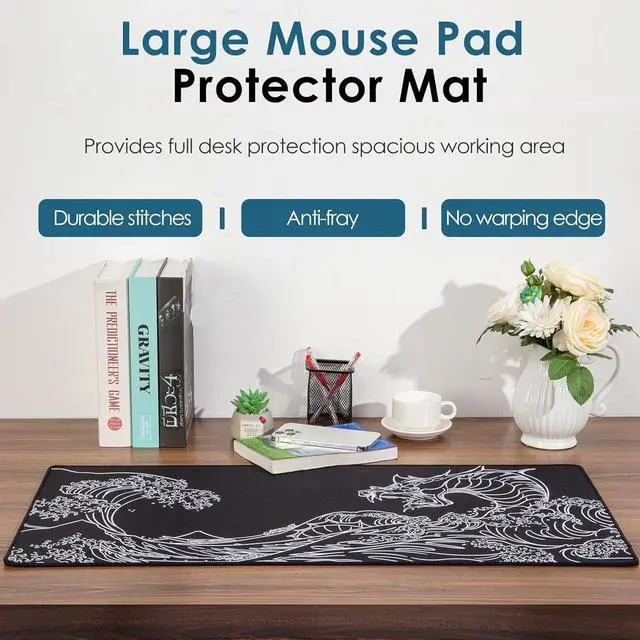 Extented Size: The large size gives you ample of room to fit your mouse keyboard and laptop and other desk items. Perfect for those bothered by constantly having to move the mouse and pick it up and replace it.
