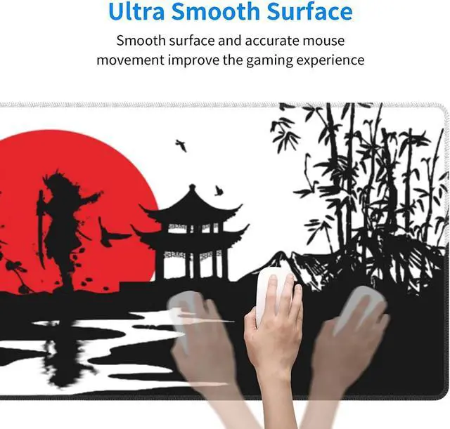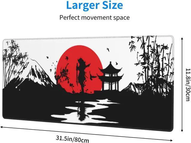 Large And Extended SizeThe Size Of This Big Cool Mouse Pad Is 31.5 11.8 0.12 Inch Which Is Big Enough To Fit Your Full-Sized Keyboard Mouse Laptop Or Other Item On The Desk Providing More Space For Professional Gaming Or Office Work. Besides You Can Also Use This Extended Mouse Pad As A Desk Pad Writing Pad Platform Protection Mat Keep Your Desk Clean And Uncluttered. Ultra Smooth SurfaceThis Japanese Theme Mouse Pad Is Easy To Be Cleaned By Wet Rag Or Washed No Deformation And Much Durable Than Other Ones. Covered By The Superfine Fabric The Mouse Pad Has A Soft And Smooth Surface Helps You Track The Mouse Fast And Accurately Maximally Enhances Your Gaming/Working Experience.