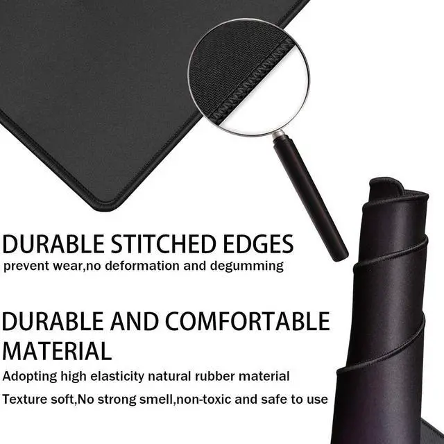 Durable and Comfortable Material Gaming Mouse Pad: The durable stitched edges protect the pad from wear, deformation and degumming. Adopting High elasticity natural rubber material, this mouse & keyboard mat will provide you with the maximum comfort using experience.