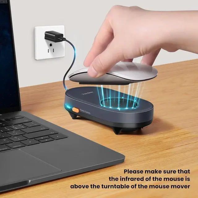 With ON/OFF SwitchYou dont need to waste time plugging and unplugging over and over again. Just a single press, the mouse jiggler will be turned on or off. Please make sure the sensor area of your mouse is casting on the spinning wheel of the mouse mover before turning it on, then its ready to go.