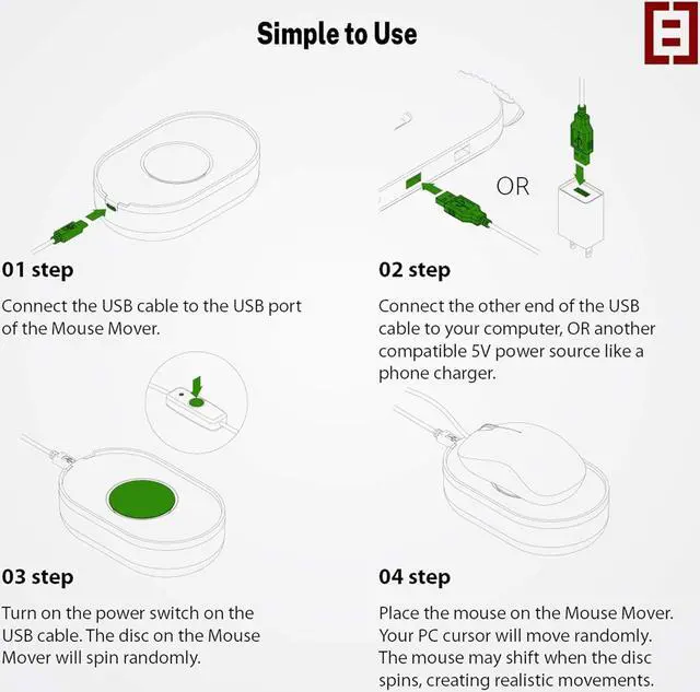 EASY TO USE: Plug into a 5V wall charger or USB port, place your mouse on it. Done! ON/OFF switch with LED indicator light to easily turn OFF when not in use. Large surface to accommodate standard mouse size. Cradle for mouse that prevents it from accidentally falling off.