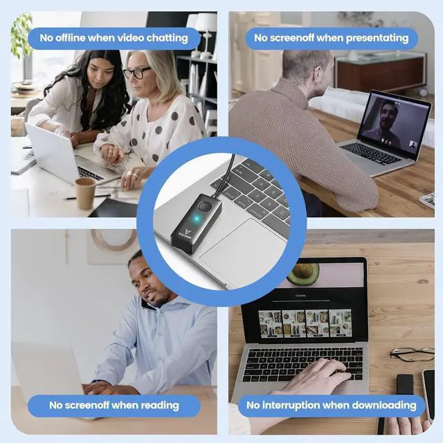 Plug and Play The mouse mover requires no driver, just plug it into your computer and press the button, the cursor will start to move automatically. No annoying software installation, easy to use.