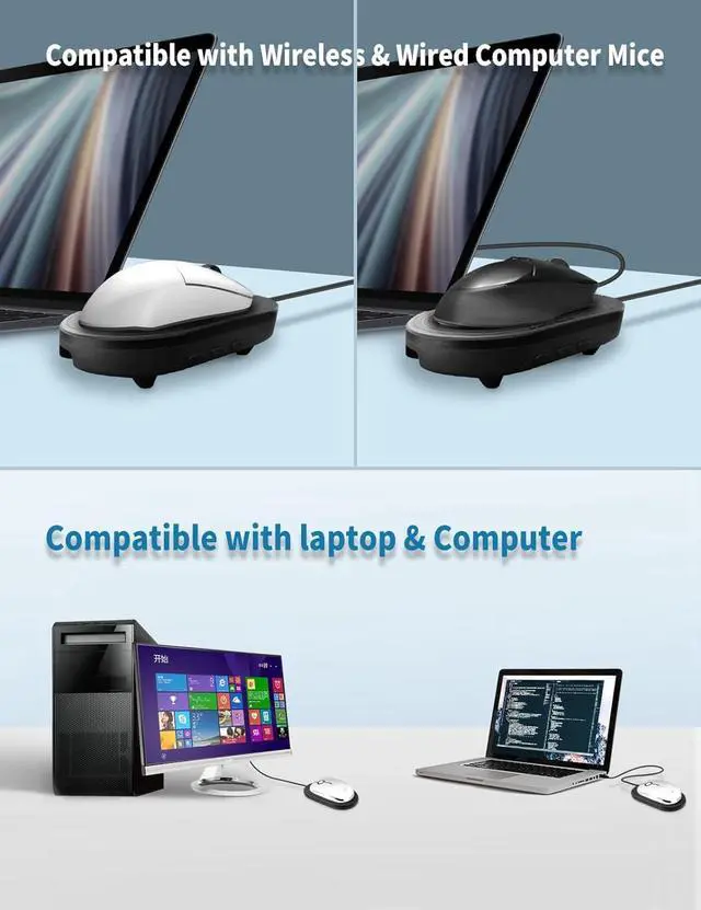 Wide Compatibility & Sale ServiceOur mouse shaker compatible all oerating systems, can be used on both desktop and laptop computers, Wireless and Wired Mice. If you have any question, please feel free to contact us, we will reply you within 24 hours.