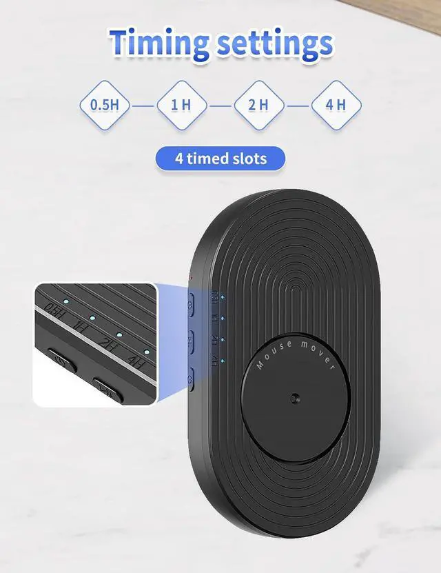 Adjustable Interval TimeMouse Jiggler has four timer settings, 0.5 H/1 H/2 H/4 H. There is also a pause/start button to press when you come back in any time. It can accommodate your less than 0.5H and more than 4 hours settings!