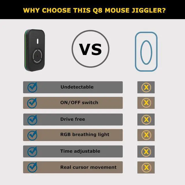Silence Quiet Micromotor: We found there are lots of loud noise issues with other mouse shakers. So after months of dedicated research and thousands of tests, designed an exclusive super-quiet micromotor. When the mouse jiggler is working, it makes a barely inaudible sound, only a soft sound below 20dB to shake you off the annoying noise