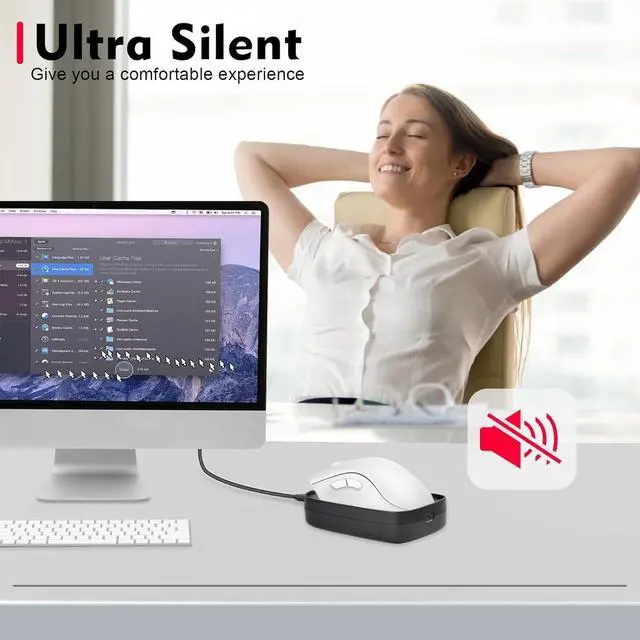Ultra-SilentMouse jiggler undetectable with a built-in silent-type motor, our computer mouse jiggler only emits less than 20 dB of a subtle sound while running. Allows you to rest, exercise, yoga, date, work at home, play games with your kids without being disturbed.