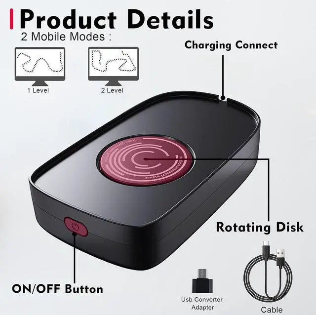 2 Mobile ModesMouse mover two different mobility modes that can be adjusted by the on/off button, choose the way you don't use according to your daily needs. Mouse mover holds suitable for many occasions, such as remote working, ppt presentation, online meeting or gaming etc. More mouse can be used with it.