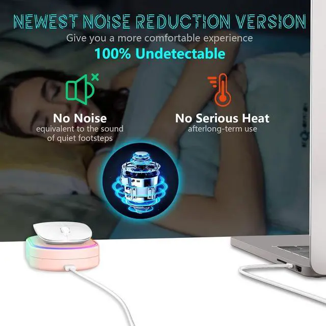 RGB Breathing Light: This mouse mover device is equiped with gradient color breathing lights (Gradient has no light). Have some colorful decorations, your desk is no longer monotonous. (The light color changes automatically and can be turned off)