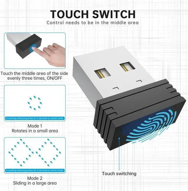 4. Innovative ON/OFF touch switch design, you can turn on and off the Mouse Jiggler with a light touch, which is convenient and fast, and avoid to damage your computer USB ports due to frequently plug and unplug.