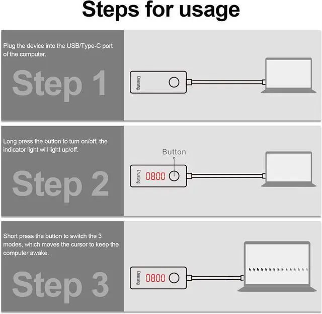 Widely applicable: Our Type-A mouse jiggler Designed to work flawlessly with any computer and laptop that uses a Type-A port. And compatible with the most popular computer systems likeiOS, Linux, and Win10/8/7.
