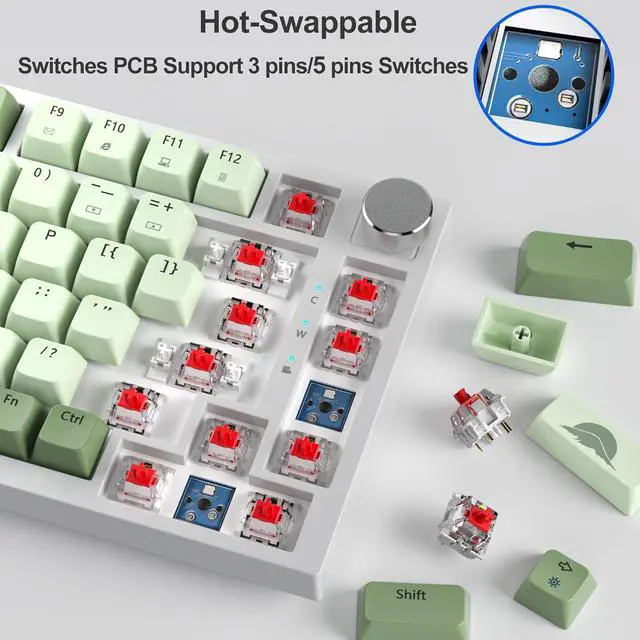 Hot-Swappable 75% KeyboardOffers premium hot-swappable sockets, allowing users to swap desirable 3-pin or 5-pin mechanical switches afterwards without soldering issue