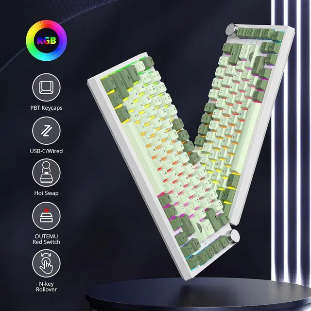 82 Keys Compact Design & Gorgeous RGB Effect75% mechanical keyboard, more spaces left for mouse movements; 18 RGB backlight modes and 8 backlight color on board, experience stunning RGB lighting effects that bring your keyboard to life