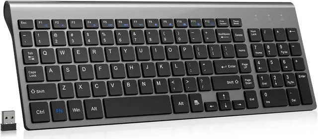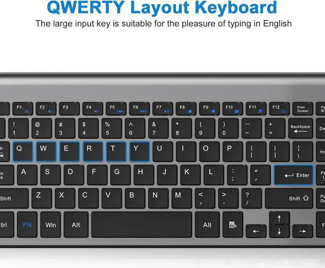 QWERTY Layout Wireless Keyboard: The keyboard with standard QWERTY layout and the Fn function keys, you can directly use 12 multimedia keys to adjust the volume, access the homepage, copy, paste, cut, etc. You do not need to search for the key combination Fn + F1~F12. The slim design of the compact keyboard ( 14.5 x 5.3 x 0.23 inches) ensures that it can be easily put in a backpack or in the pocket of your laptop.