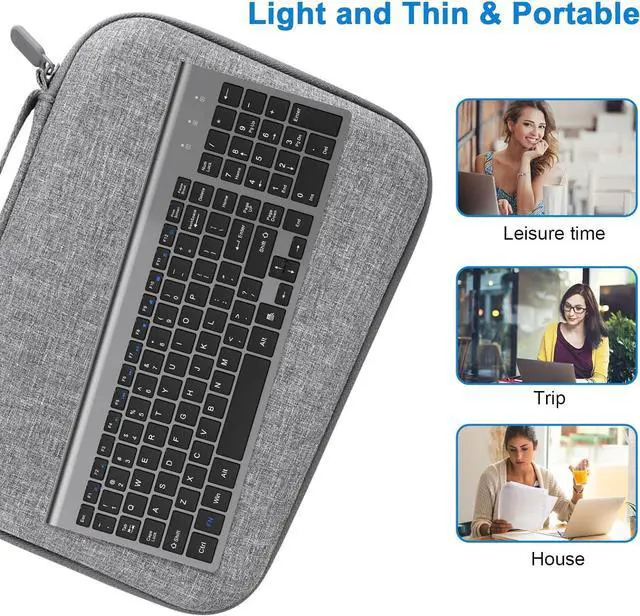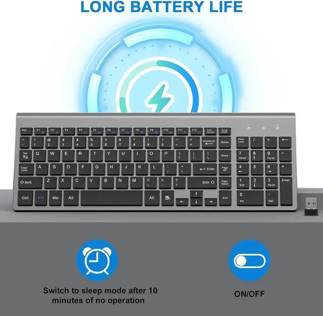 Ultra-long Standby: The compact keyboard intelligently goes to sleep after 10 minutes of no typing, wake up the keyboard by clicking any key. Combined with the power switch, it can achieve ultra-long standby time, and it can work for more than 180 days in normal office use.