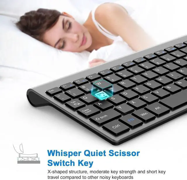 Sensitive Response and Quiet Adjustment: For efficient typing, the PC keyboard has a slim design and attractive scissor switches. This ensures that you don't miss a button when writing emails or blogs for hours. The flat keys of the wireless keyboard are remarkably tactile and have enough key travel so you can enjoy a completely new comfort.
