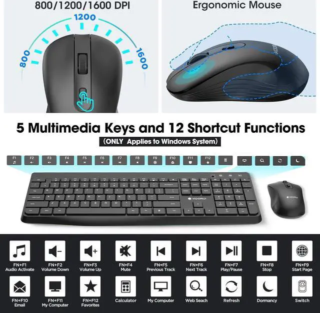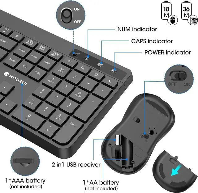 [KOORUI SERVICES] KOORUI provide high-quality keyboard and mouse set and premium services, included 12 months warranty service. If you find any damage, malfunction or missing accessories, please feel free to contact us