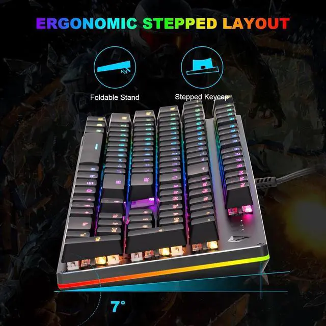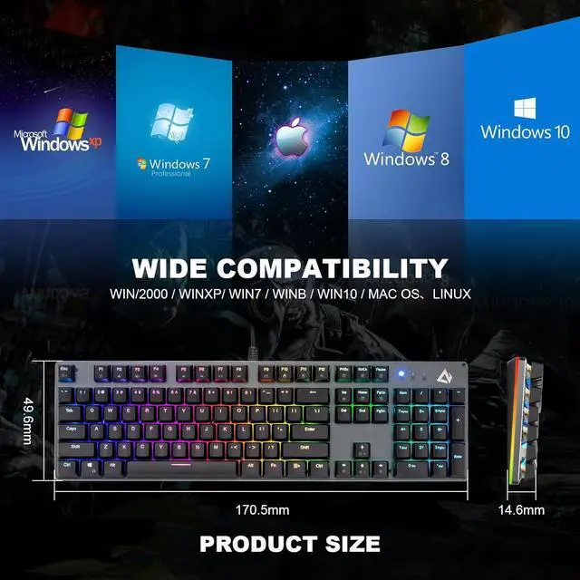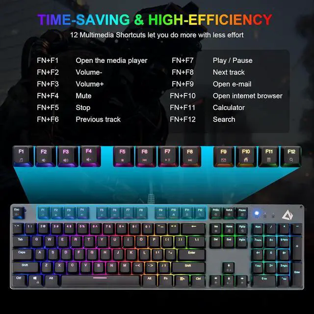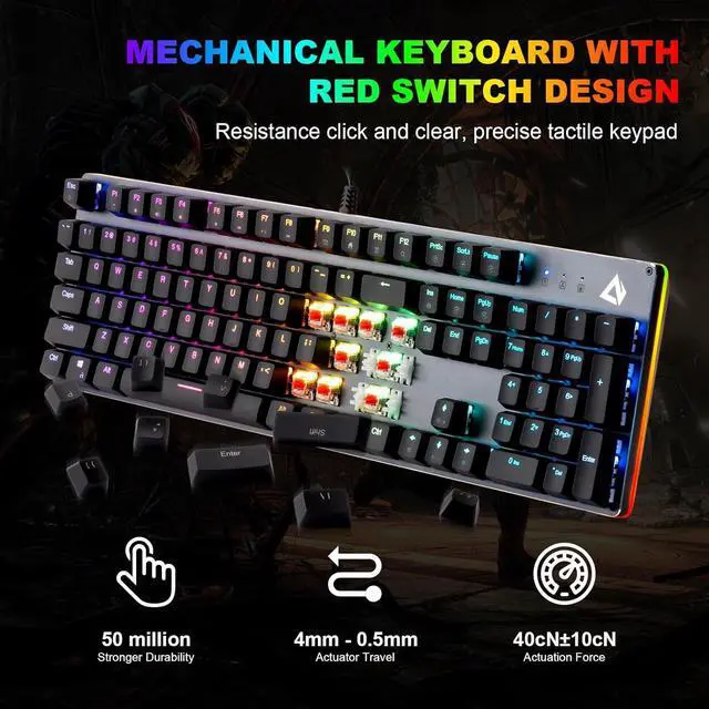CHONCHOW Full-Size Mechanical Gaming Keyboard with Red Switches, Wired USB 104 Keys RGB Backlit Gaming Keyboard with Number Pad, ABS Keycaps/Anti-Ghosting for Windows, PC Mac Gamer-Black