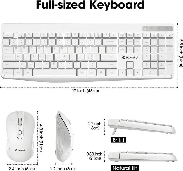 [Slient Typing and Cliking]The keyboard and mouse Combo offers a quiet typing experience, with soft and responsive keys that won't disturbing others around you. The bracket under keyboard forms a 8° angle with desk that lets you enjoy comfortable typing and less stress on the wrist.