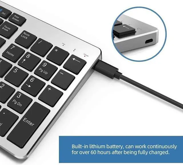 Rechargeable with Automatic Sleep Mode: The Bluetooth wireless keyboard boasts a built-in lithium battery, eliminating the need for constant battery replacement. Recharge it easily via a Type-c cable and enjoy the convenience of automatic sleep mode, which conserves power. Simply press any key to awaken it from sleep mode.