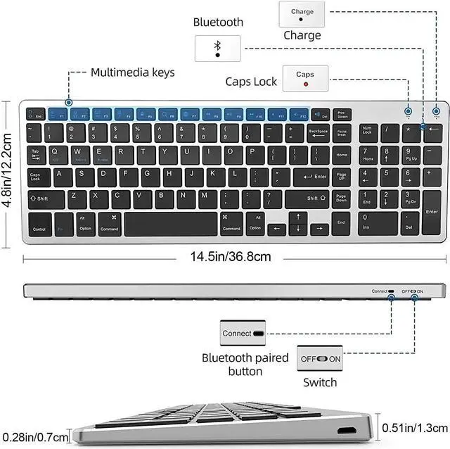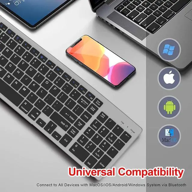 Wide Compatibility: Our Bluetooth keyboard is compatible with all major operating systems that support Bluetooth, including iOS, Android, Mac OS, and Windows. Whether you have a brand new MacBook, laptop, desktop, tablet, or smartphone, this keyboard seamlessly connects to them all.