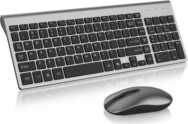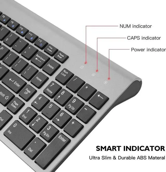 Less Noise & Profile Keys Typing The keyboard's noise reduced keys and the silent click of the quiet mice will allow you to do your job without missing a sound or disturbing your environment. The wireless keyboard mouse combo features auto sleeping mode, plus on/off switches to help conserve battery use, you can go for months without the hassle of changing the batteries (AA batteries are not included)