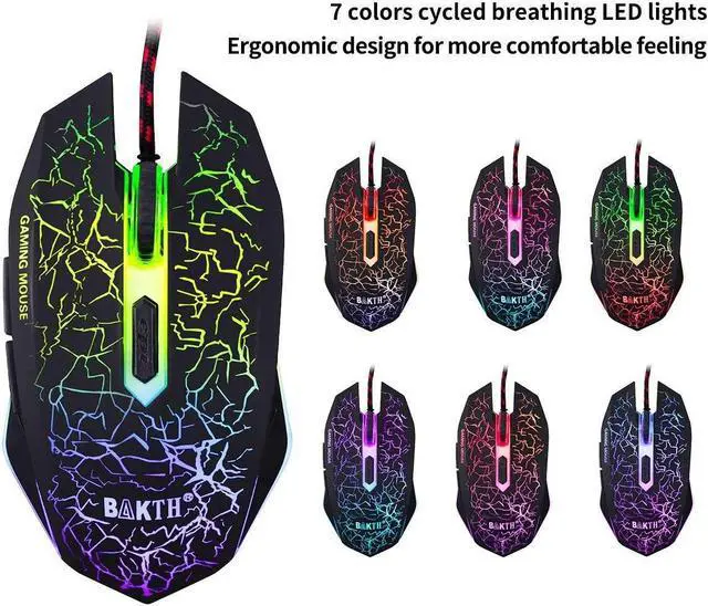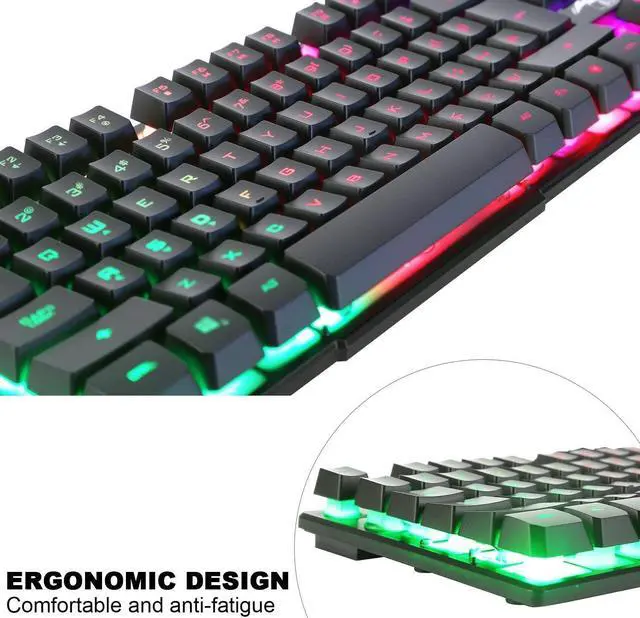 Rainbow backlit gaming keyboard, seven colors breathing backlit mouse. Ergonomic design for wired keyboard and mouse, comfortable to operate.