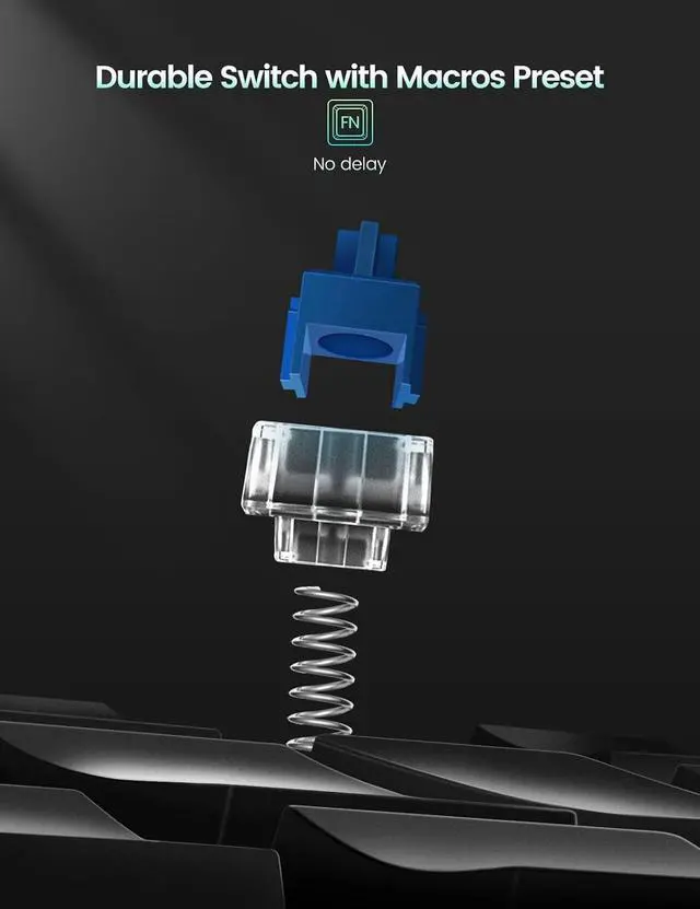 Multifunctional Keyboard with Easy SetupThis programmable mechanical keyboard supports multimedia control, hotkeys, one-click start, real mouse, macro, etc. Simple settings achieve complex key funtions such as one-click start: folders / documents / common websites / APPs / System function, etc. Powerful but easy to set up. Just set the function you want on the key, then drag the function key to the corresponding virtual key, and remember to click FLASH THE KEYBOARD, and it's done.