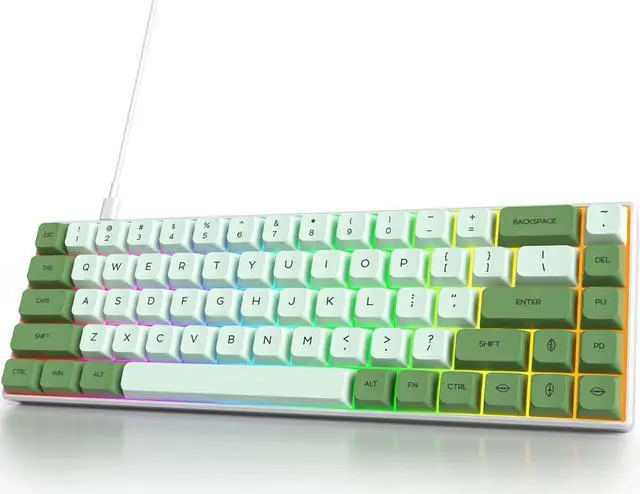 Portable 65% Mechanical KeyboardOwpkeenthy RGB Mechanical Keyboard has a minimalist 65 percent 68 keys layout, boasts both practicality, the full-function and compact characteristics of keyboard and it also geared with arrow keys and frequently used control keys.
