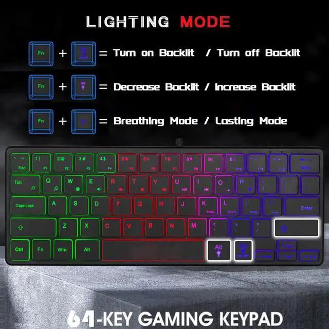 64 Keys Compact Mini DesignThis keyboard is reduced to 60% of the perfect size, suitable for various environments, business travel, games, office and home use, keyboard with number pad provides you with better using experience and saves more desktop space.