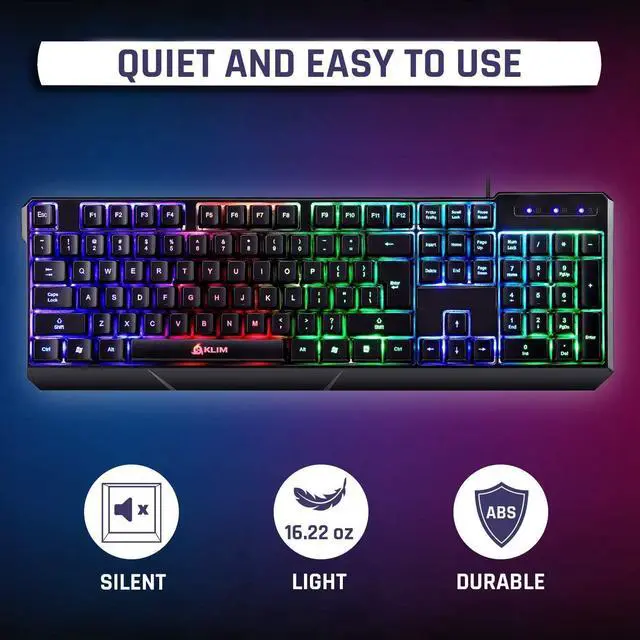 QUIET AND COMFORTABLE. The KLIM Chroma was conceived to be as quiet as can be. Each keystroke produces a soft sound. Overall it makes typing a very comfortable experience. AESTHETIC. A keyboard takes quite a lot of room on a desk, so it might as well look good. The chromatic lighting effects will definitely be noticed, especially in the dark. The lights can be turned on and off by the switch of a button.