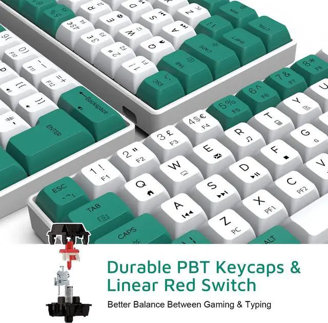 [RGB Backlight]: Full keyboard independent RGB lighting design, each LED lamp 256 level PWM, delicate and soft, providing you with refreshing and comfortable visual effects, support full keyboard backlight customization. Red mechanical switch and Two-shot injection, a good manufacturing technology of keycaps. The keyboard made from unique and high-quality durable colorful PBT keycaps with the excellent touch experience and long usage time which provide you a good mood during games or work.