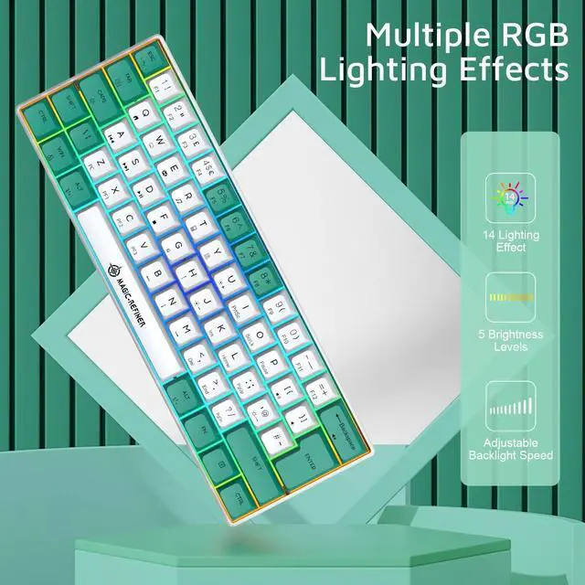 Mechanical Keyboard]: The keyboard is designed with 62 keys, and 100 keys can be realized after FN combination (standard keys and multimedia function keys). USB 2.0 full speed connection device, support 1000 report rate. Full speed USB communication protocol to meet the speed requirements of competitive games, support USB online update. The wire rod is copper core wire, type-C design, easy to plug and carry, and the wire length is about 1.6 m.