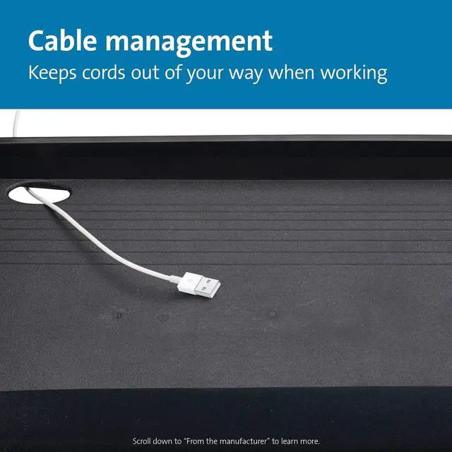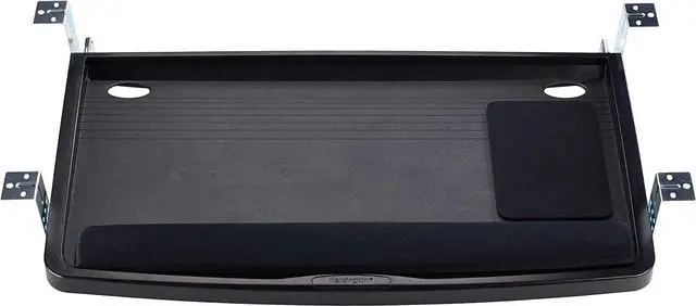Extra-wide 26" tray can also hold a wrist rest, mouse and mouse pad alongside the keyboard on either the left or right side; wrist wrest and mouse pad included