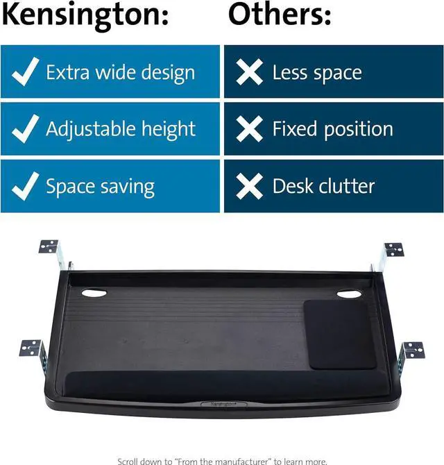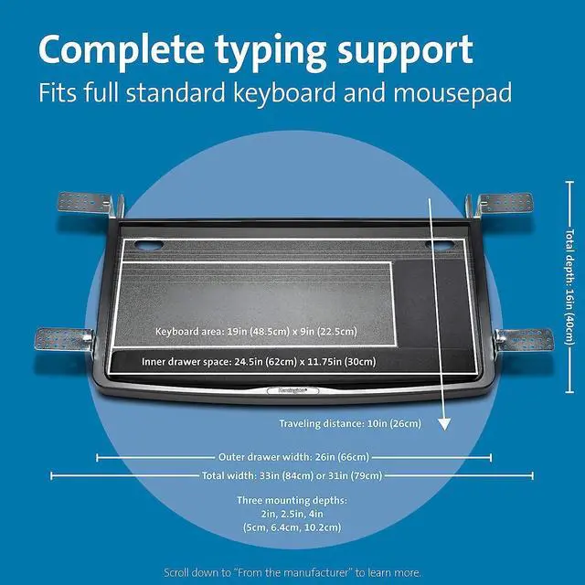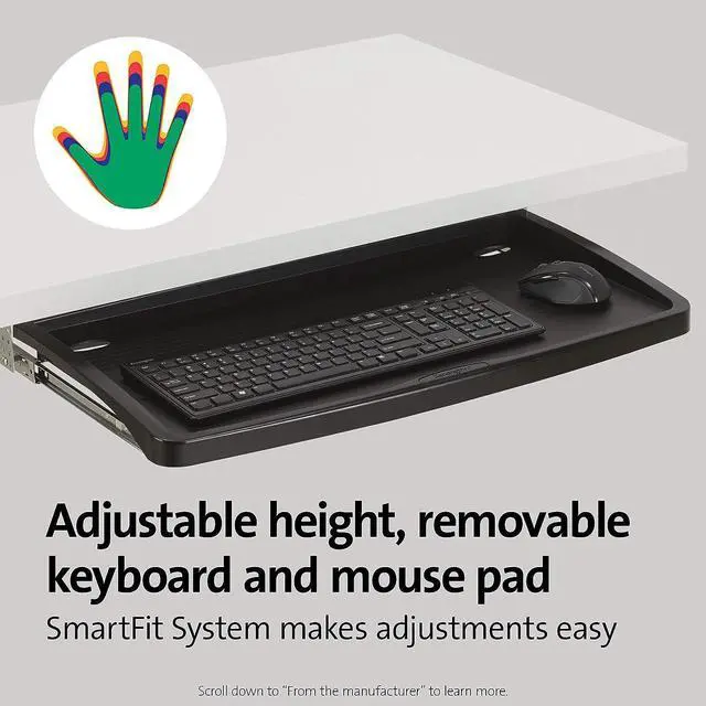Drawer fits all sizes of keyboard including oversize and ergonomically shaped models
