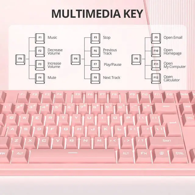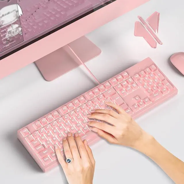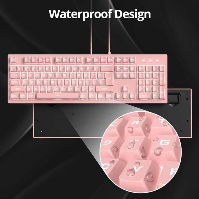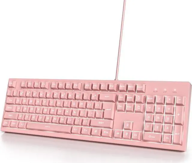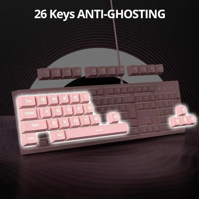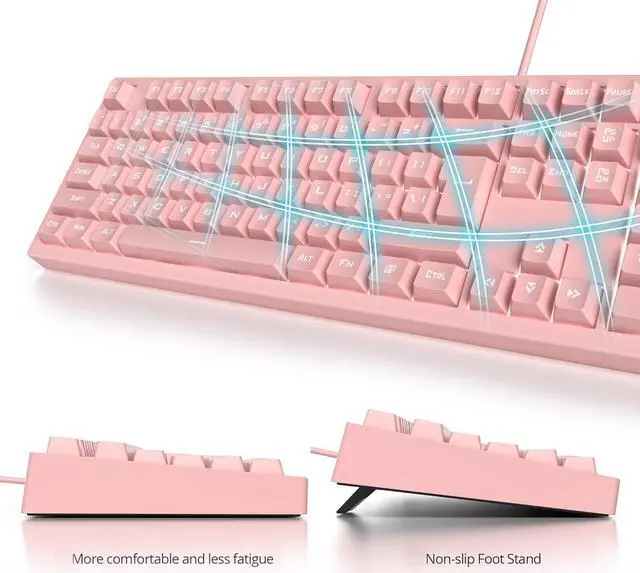 LED Light-Up KeyboardThis pink gaming keyboard offers two fantastic backlit modes to choose from: static backlight and dynamic backlight. You can effortlessly adjust the brightness to your liking. With its clear and uniform backlighting, you can comfortably type or game in a dark environment without any hassle.