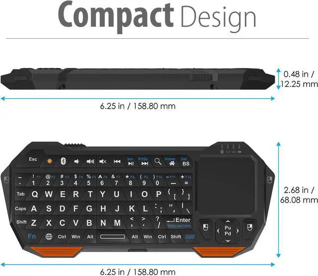 [COMPACT & PORTABLE QWERTY KEYBOARD WITH TOUCHPAD] Innovative and compact QWERTY keyboard with touchpad that provides comfort combined with the freedom of wireless connectivity. Connect to all of your favorite devices with this wireless keyboard. This controller gives you everything you need right in the palm of your hand. Navigate the cursor easily with your thumb without having to touch your screen, mouse or keyboard. Excellent for browsing, searching or streaming on a smart TV.