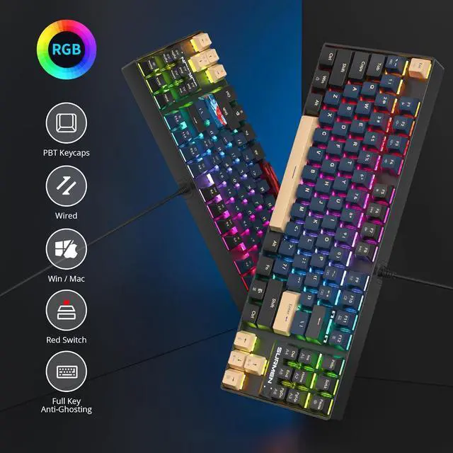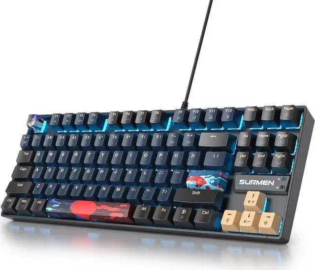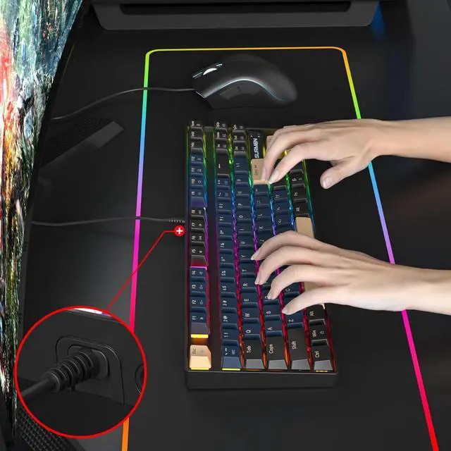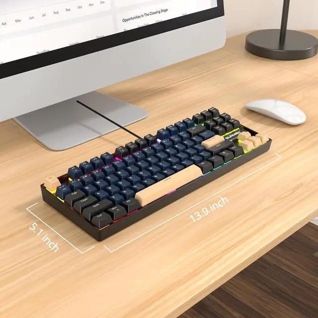 TKL Mechanical Keyboard: With the 87 keys layout of the keyboard, maximize your space and efficiency. Compact and ergonomic design without compromising functionality. You can access all the essential keys you need for various tasks, such as media controls, function keys, arrow keys, and number keys.