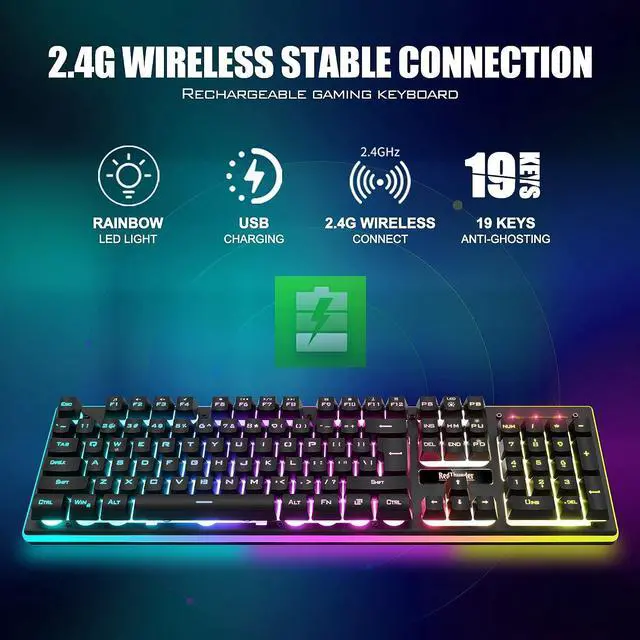 High-performance 2.4G Wireless KeyboardAre you looking for a wireless keyboard that can perfectly balance work and games? RedThunder K10 rechargeable wireless gaming keyboard will be your best choice. 2.4G high-speed and stable transmission, fast membrane keys with super low response time, ensure that it can easily deal with even the most intense battles. Please charge 8 hours before using.