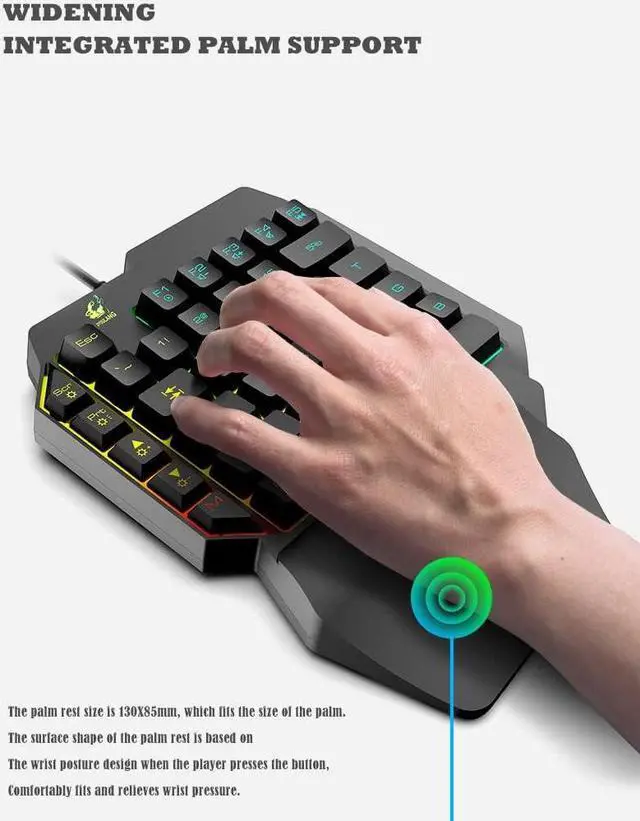 Full Key Anti-Ghosting Born for the game, this one-handed game keyboard has Anti-Ghosting with all keys, and It also supports multimedia function keys, which is convenient and fast to better meet your game requirements.