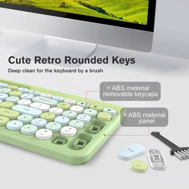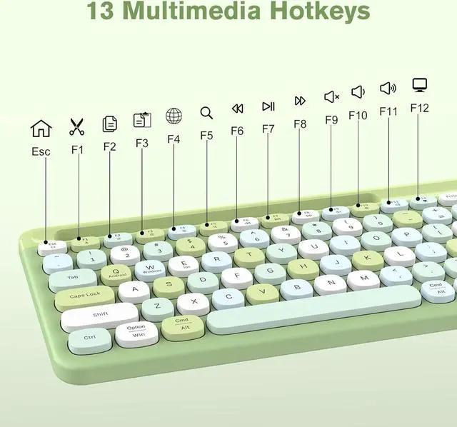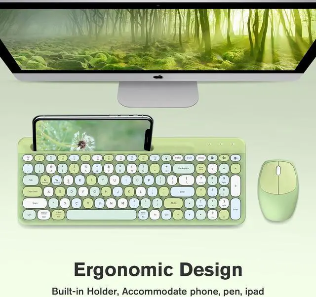 Computer Keyboard with Phone HolderRetro Oval Keys, Ergonomic Comfort, with low-profile, whisper-quiet 100 keys, Feel-good typing. Cute style keyboard with typewriter-inspired keys and a rounded mouse, Keyboard