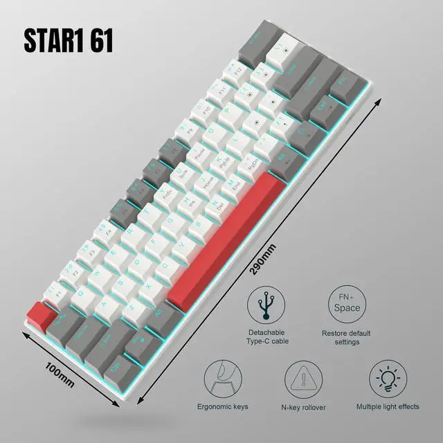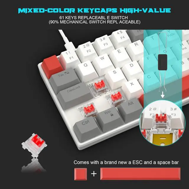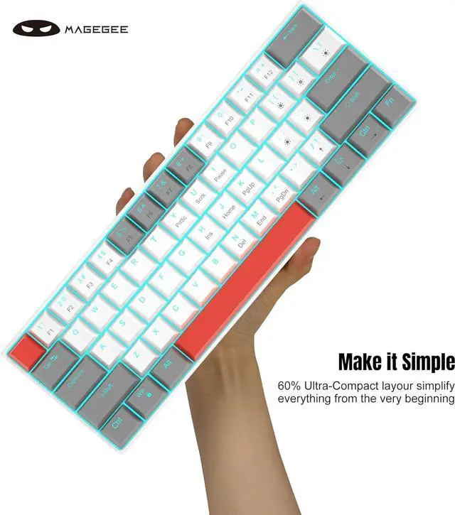 Comfortable Typing Experience And Full 61 Keys Anti-ghostingMageGee red switches mechanical keyboard adopted with classic red switches, that responds fast with no lag, this mechanical keyboard will offer you wonderful tactile feedback on each keypress. The stepped layout can also provide you with an ergonomic angle for typing. Advanced anti-ghosting technology allows all 61 keys to work simultaneously to provide a fast typing response. The keyboard supports plug & play without any software.