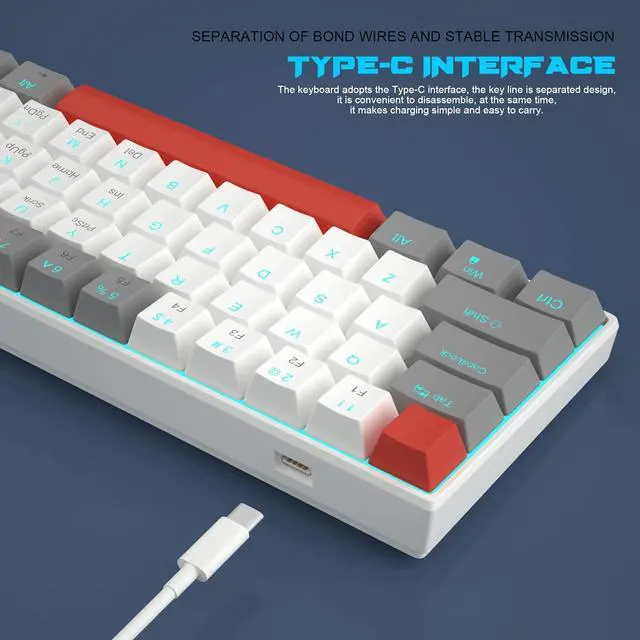 Metal Panel And Type C Separated DesignMageGee 60% mechanical keyboard adopts advanced metal panel design, beautiful and strong. The keyboard and the Type-C line can be separated, which is convenient for your use. The Type-C Cable adopts a specially customized thick anti-interference line, more stable and accurate to the output of your ideas.