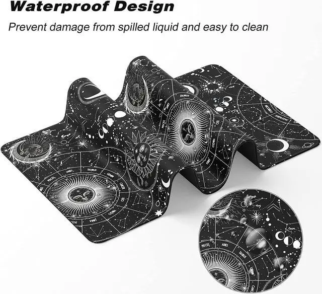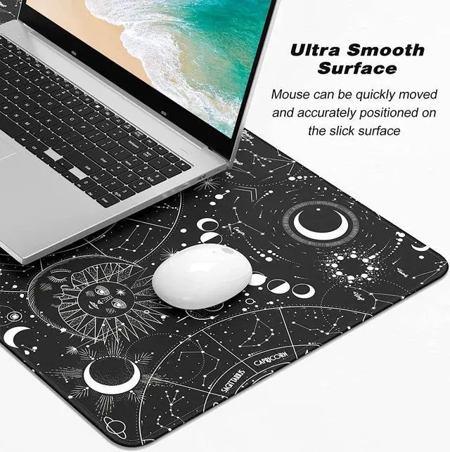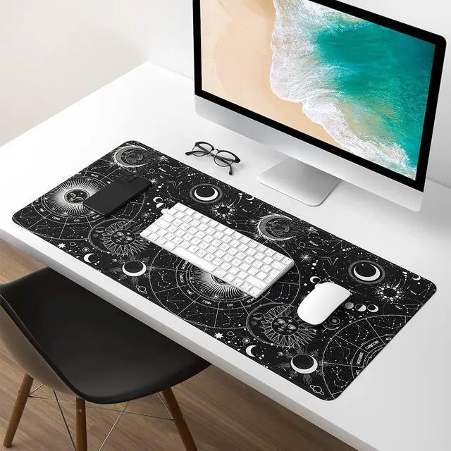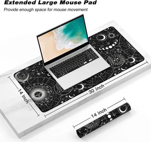 Atufsuat Extended Gaming Mouse Pad, XL Large Desk Pad 30 x 14 Inch, Big Computer Keyboard Mousepad, Waterproof Mouse Mat with Stitched Edges and Non-Slip Base for Women Office Gaming, Sun Moon